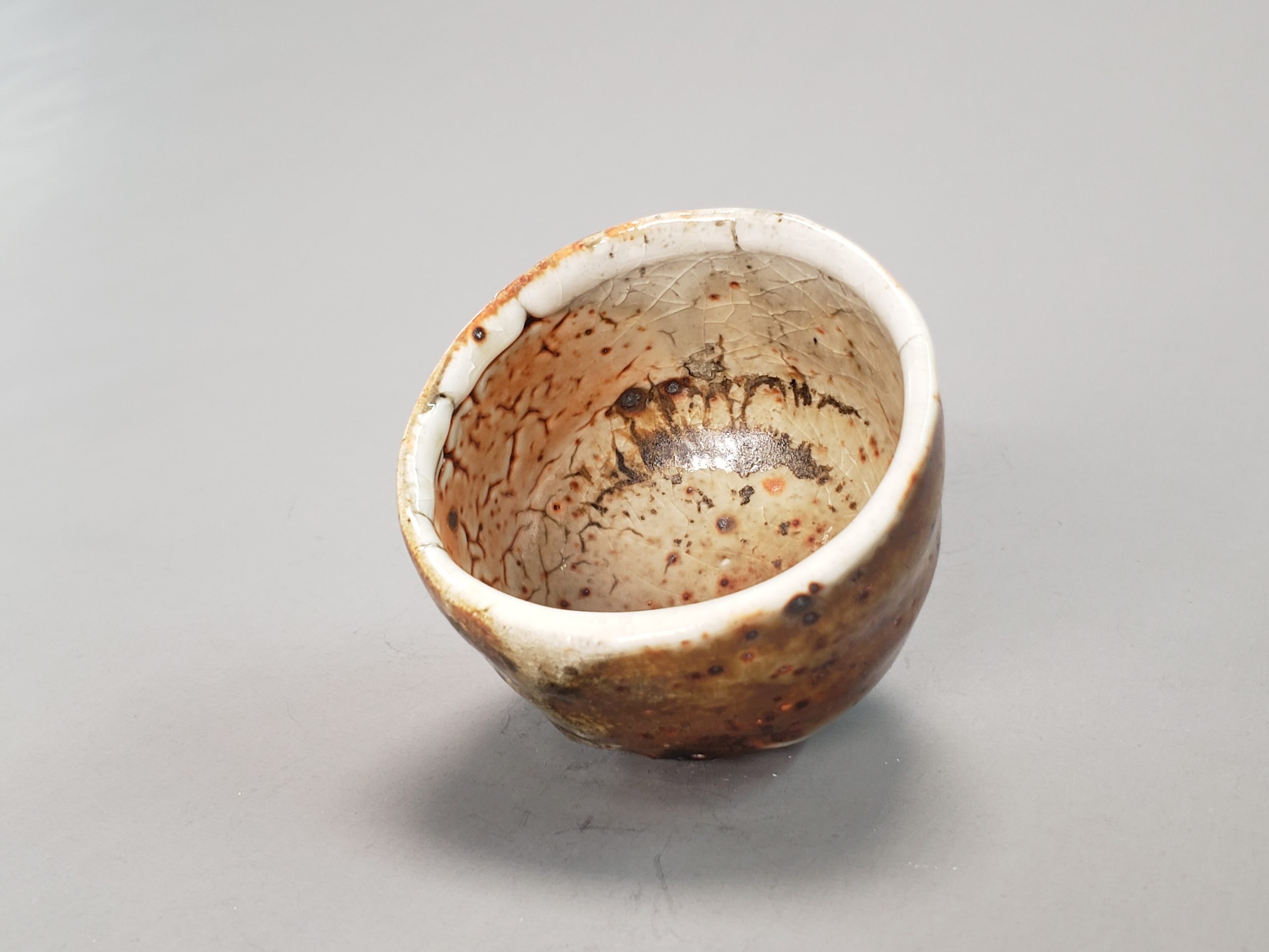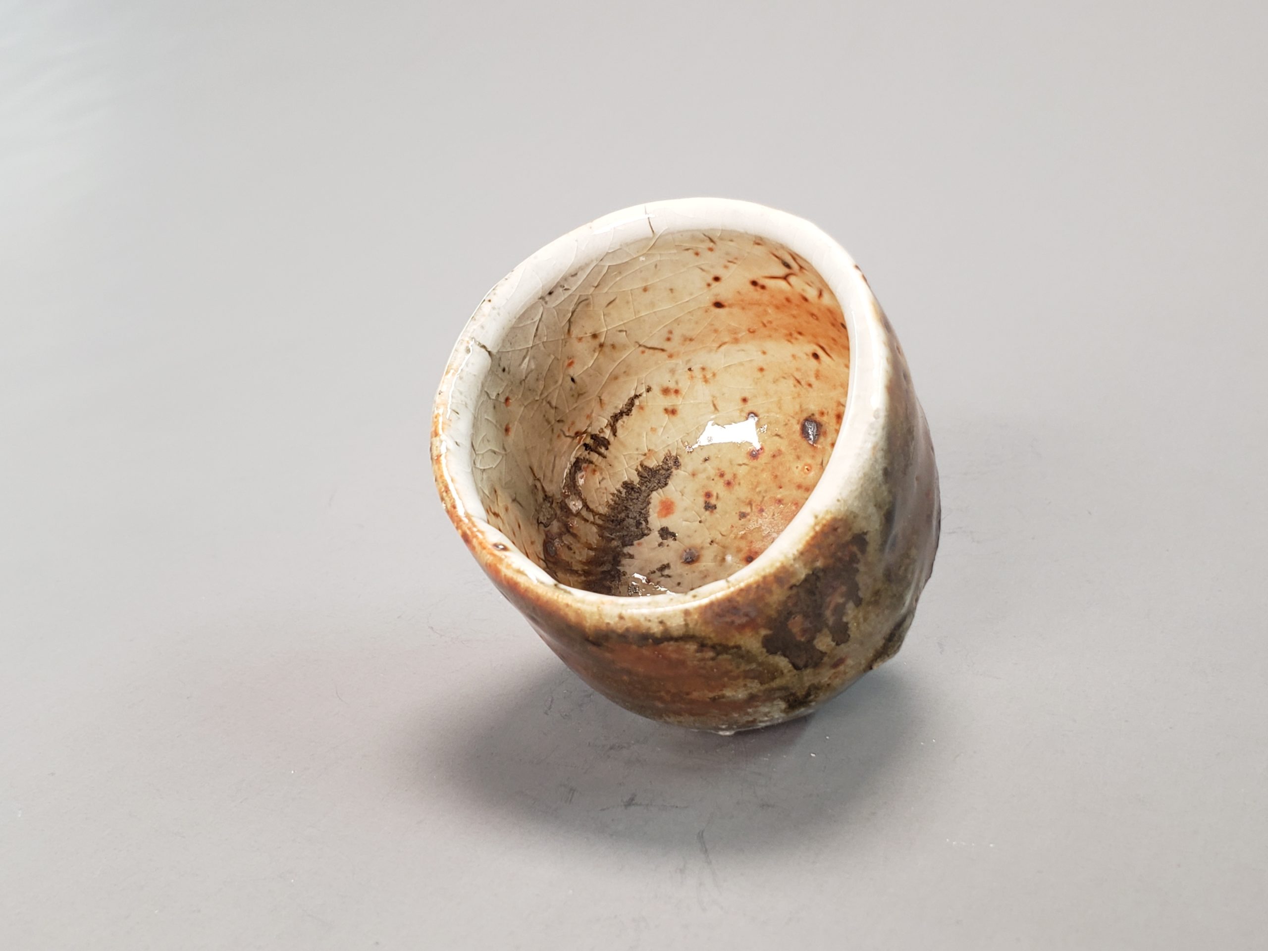 Tasse en grès brun de fabrication maison tournée. Émail Shino avec un léger voile de cendres de la cuisson bois 1280°c.Puis recuisson en four gaz 1320°c. Aspect brillant.